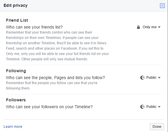 - They don’t want people to know what people they have as Facebook friend and amount of friends they have.